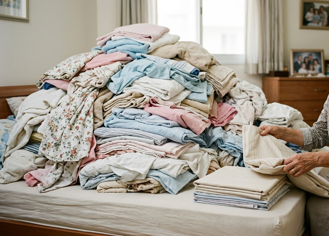 "פסח האחרון היה חלומי", כך פתחה אמא שפנתה אלינו השבוע למערכת, עם דמעות של נחת מהולות בעייפות עמוקה בעיניים. "הבית המה נכדים, השולחן היה מפואר, וברוך השם זכינו לראות את כולם. אבל אז הגיע מוצאי החג. הילדים נסעו, השקט חזר, ואני נשארתי מול הר סיני של… כביסה. שבוע שלם עבר עליי בין המכונה למייבש, מול 15 סטים של מצעים שלא נגמרו. ובתוך ערימות הסדינים, עלתה בי שאלה שהפחידה אותי: האם זה מוגזם לבקש מהם להביא מצעים מהבית?"