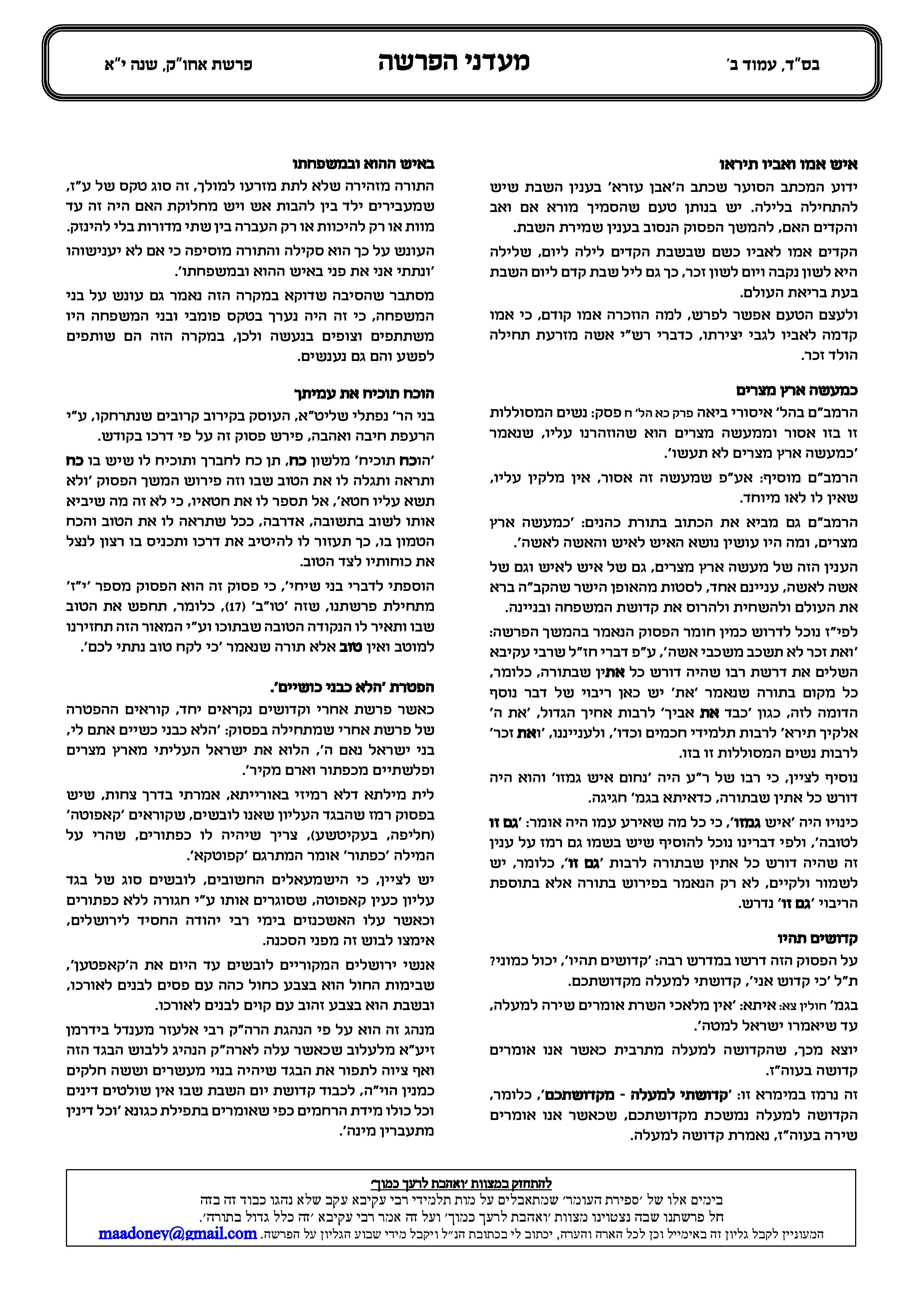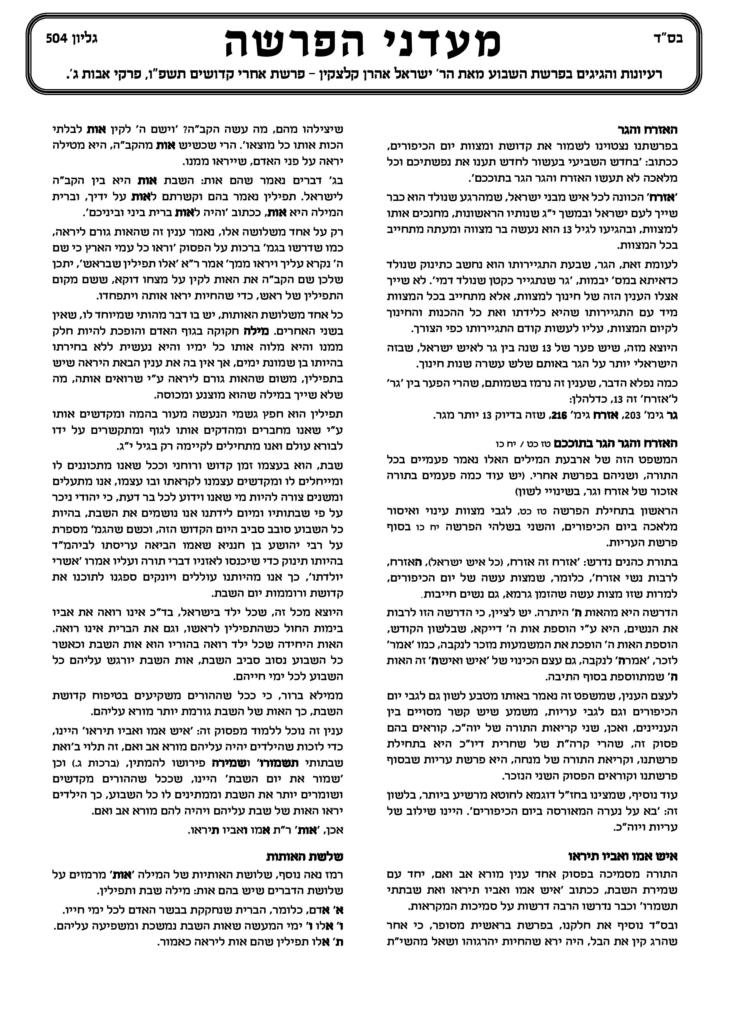 לידידיי ומכריי קוראי ומתענגי הגליון ‘מעדני הפרשה’.